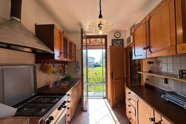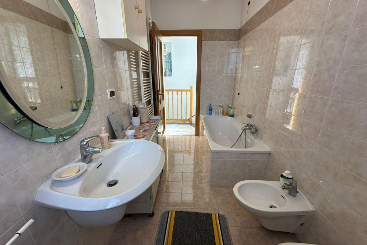 Villetta in trifamiliare pari al nuovo sviluppata su tre livelli , al piano terra rialzato con ingresso dalla pubblica via attraverso cancellino pedonale ,piccola resede per mettere uno scooter , internamente sala cucina abitabile con uscita su piccola resede dove poter mangiare d'estate, antibagno e servizio igienico, al piano primo camera matrimoniale, disimpegno, bagno con doccia e camera media, al piano seminterrato un ampio vano con predisposizione per cucina, bagno con vasca idromassaggio e altro vano.