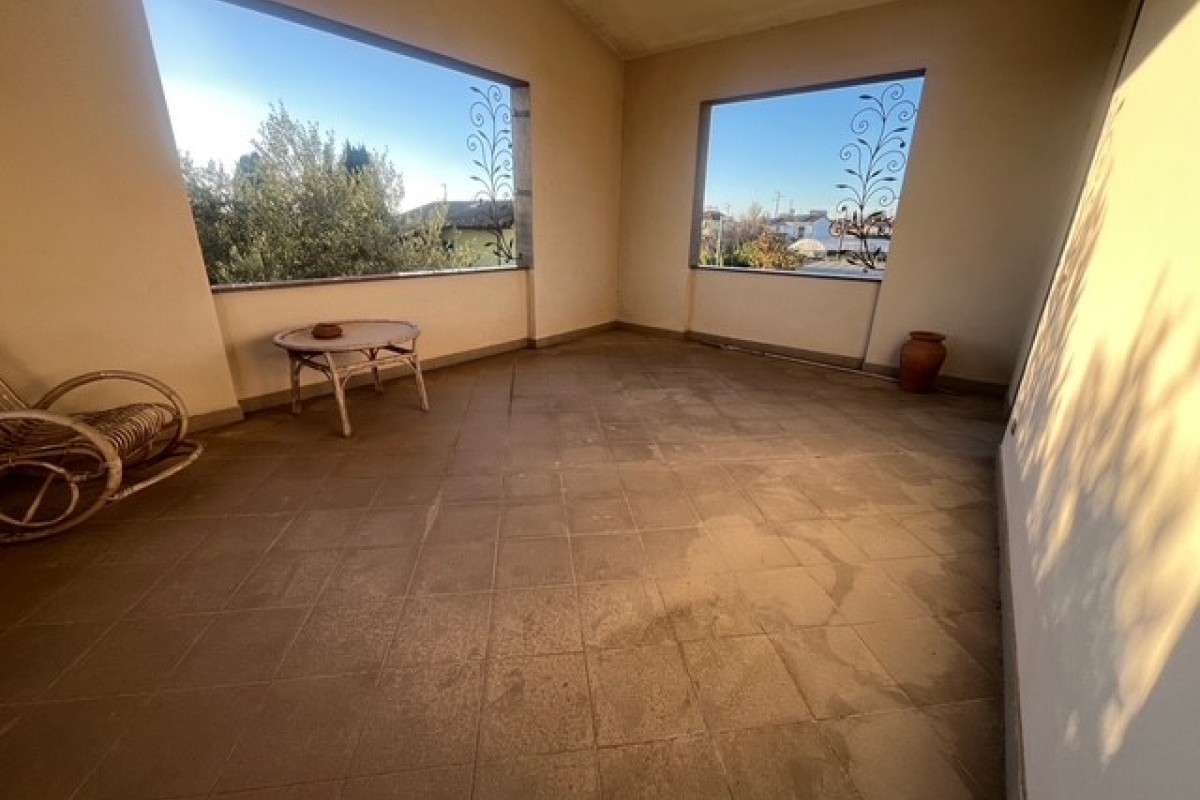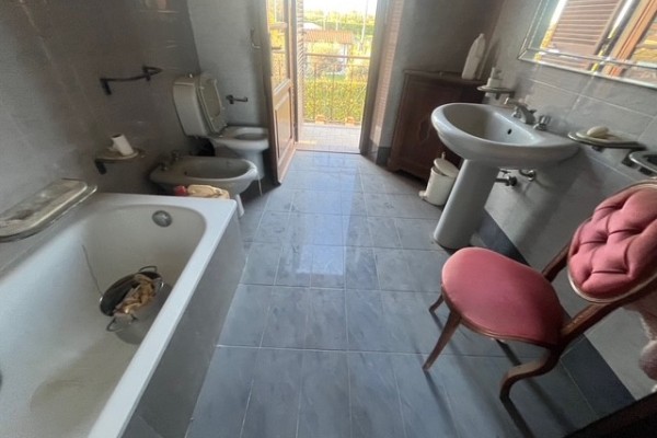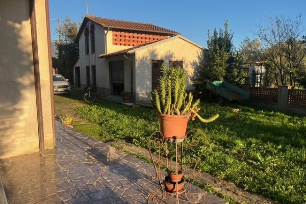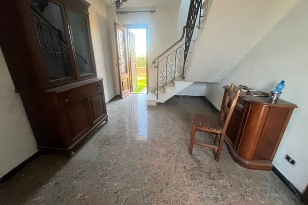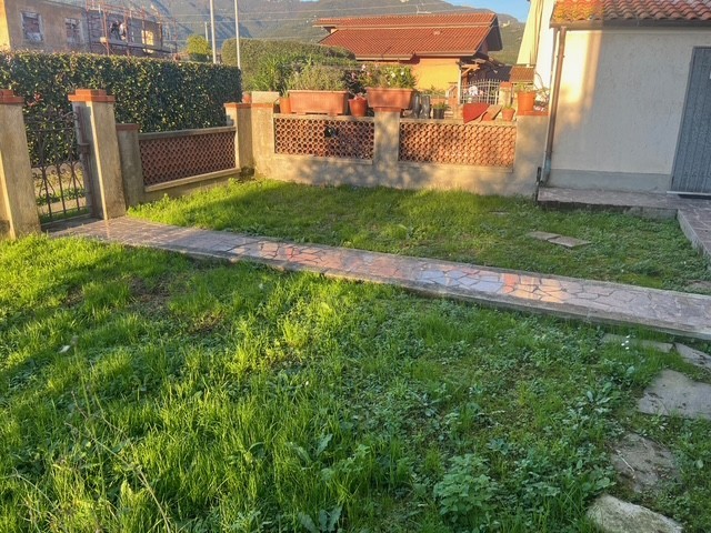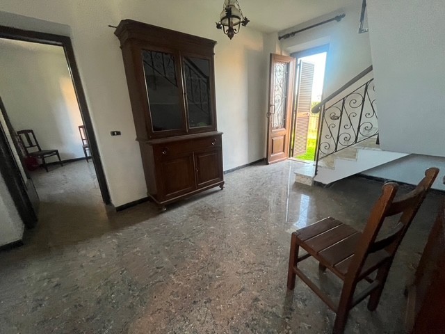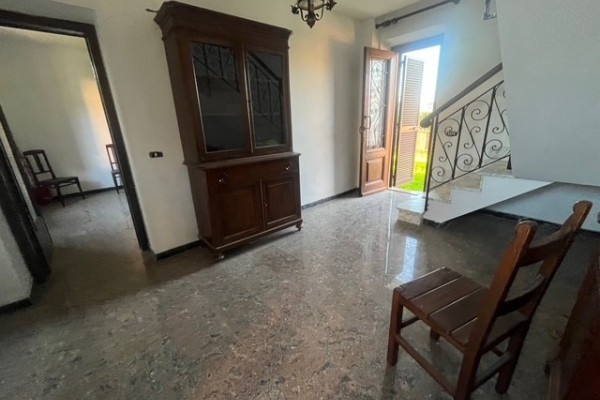 Semindipendente composta piano terra da soggiorno cucina camera matrimoniale e bagno 1 piano camera e terrazza ,camera con bagno, e altro bagno seminterrato con predisposizione per la cucina , giardino con garage coperto di 25 mq