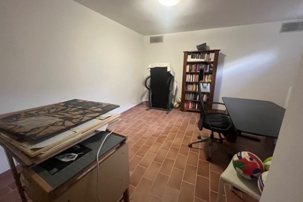 Fabbricato quadrifamiliare al grezzo elevato a due piani fuori terra oltre piano seminterrato uso cantina. Si compone al piano cantina di vano ad uso taverna, disimpegno, bagno, ripostiglio sottoscale, vano caldaia con scale interne ed esterne; al piano terra si compone di unico vano ad uso soggiorno-pranzo-cucina, con terrazzo e ampia veranda coperta; al piano primo si compone di camera, cameretta, bagno, disimpegno e ampia terrazza con pompeiana. Il tutto corredato da resede con posto auto esclusivo